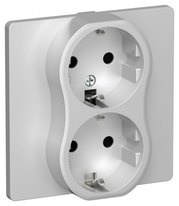 Розетка 2-м СП FLITE РС12-0-К-ФлА 16А с заземл. без защ. шторок в сборе механизм алюм. IEK FI-R21C-16-K47