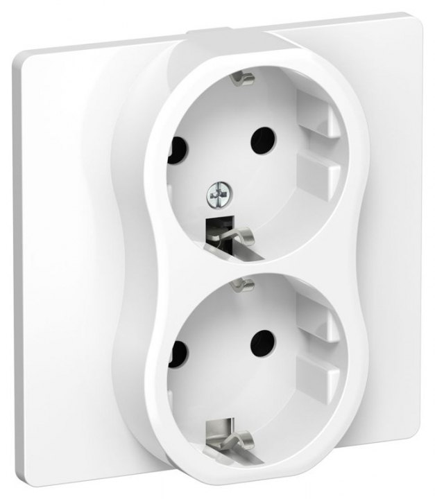 Розетка 2-м СП FLITE РС12-0-К-ФлБ 16А с заземл. без защ. шторок в сборе механизм бел. IEK FI-R21C-16-K01