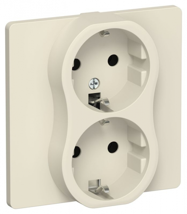 Розетка 2-м СП FLITE РС12-0-К-ФлСл 16А с заземл. без защ. шторок в сборе механизм сливочный IEK FI-R21C-16-K86