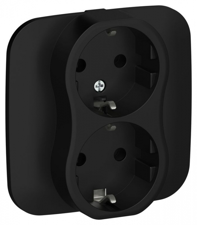 Розетка 2-м СП FLITE РС12-1-А-ФлЧ 16А с заземл. без защ. шторок безвинтовое крепление в сборе механизм черн. IEK FI-R21A-16-1-K02