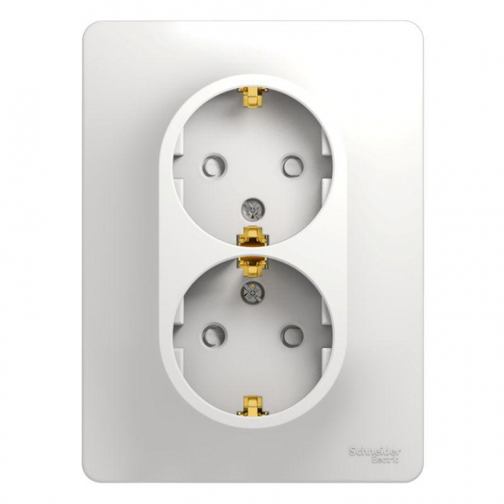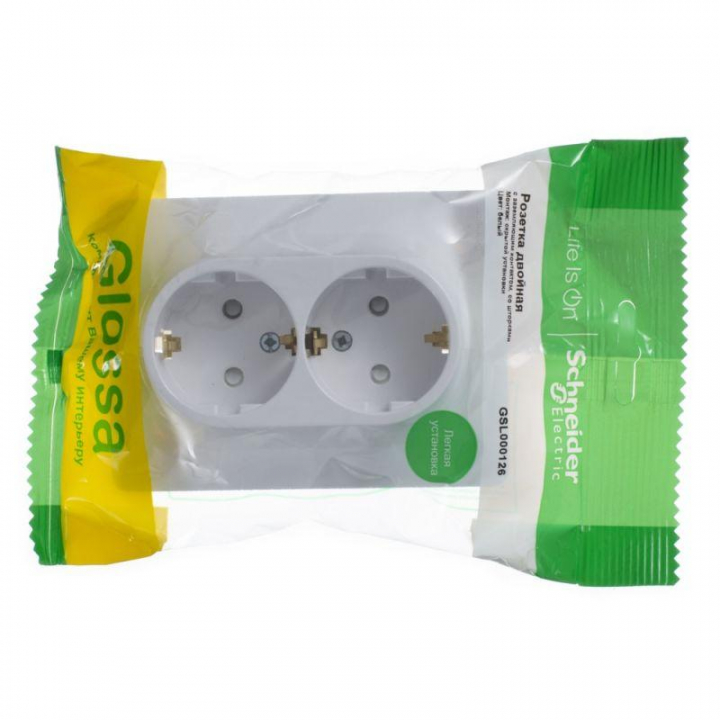 Розетка двойная Systeme Electric (ранее Schneider Electric) серии Glossa (в сборе, цвет белый) с заземлением и шторками подходит для сетей 250 В, на ток 16 А. Заземляющий контакт обеспечивает дополнительную защиту от удара электрическим током. При наличии заземления электрический потенциал уходит в землю, защищая человека. Выполнен из материала PС+ASA, стойкого к УФ-излучению и появлению царапин. Двойная розетка позволяет подключить два устройства в одном месте.