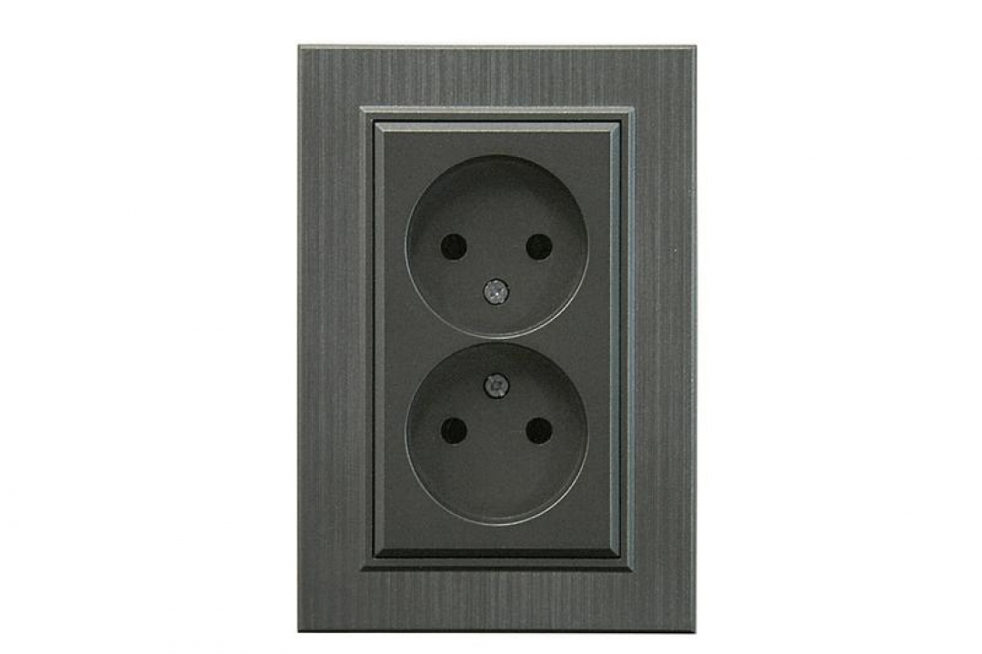 Розетка 2-я Karea LINE STAR без заземл. дым. металлик Makel 86050017