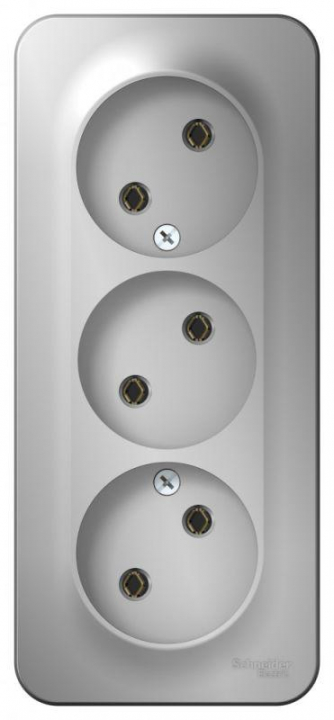 Розетка Systeme Electric (ранее Schneider Electric) BLANCA (алюминий, открытой установки) трехместная, без шторок и заземления, с изолирующей пластиной предназначена для сетей до 250В, на ток до 16А. Трехместная розетка позволяет подключить три устройства в одном месте. Она изготовлена из ABS-пластика, проста в установке и удобна в применении.