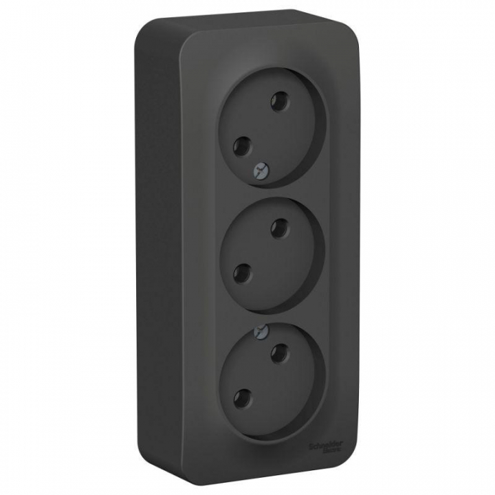 Розетка Systeme Electric (ранее Schneider Electric) BLANCA (антрацит, открытой установки) трехместная, без шторок и заземления, с изолирующей пластиной предназначена для сетей до 250В, на ток до 16А. Трехместная розетка позволяет подключить три устройства в одном месте. Она изготовлена из ABS-пластика, проста в установке и удобна в применении.