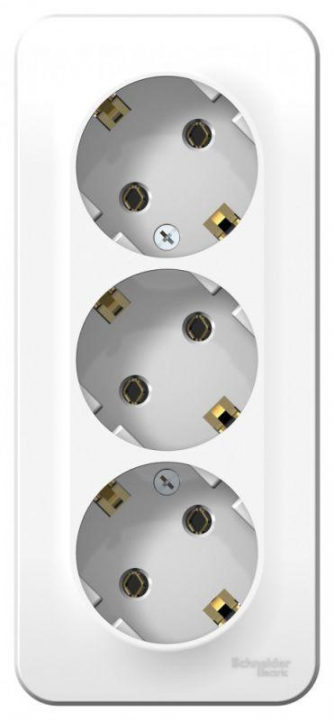 Розетка Systeme Electric (ранее Schneider Electric) BLANCA (белый, открытой установки) трехместная, без шторок, с заземлением и изолирующей пластиной предназначена для сетей до 250В, на ток до 16А. Трехместная розетка позволяет подключить три устройства в одном месте. Заземление обеспечивает безопасность при косвенном прикосновении. Она изготовлена из ABS-пластика, проста в установке и удобна в применении.