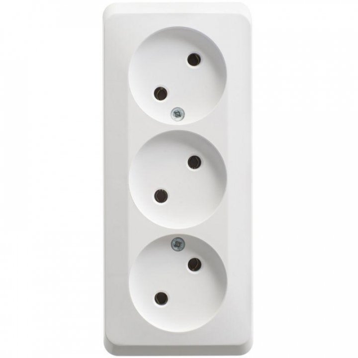 Розетка Systeme Electric (ранее Schneider Electric) ЭТЮД (белый, открытой установки) трёхместная, без шторок и заземления предназначена для применения в сетях до 250В, на ток до 16А. Трёхместная розетка позволяет подключить три устройства в одном месте. Она проста в установке и удобна в применении. Сделано в России.