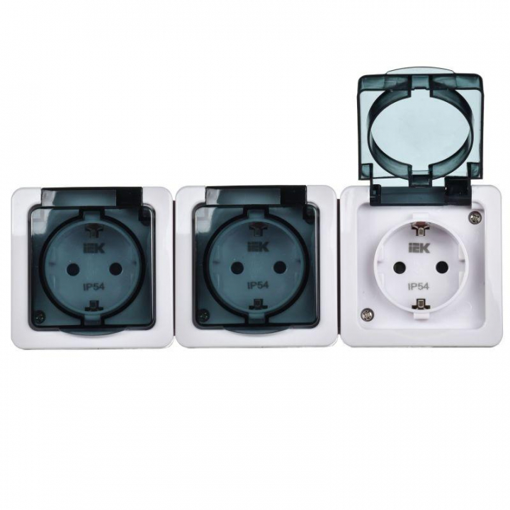 Розетка 3-м ОП Гермес Plus РСб23-3-ГПБд 16А IP54 с заземл. с дым. крышкой бел. IEK ERMP32-K03-16-54-EC