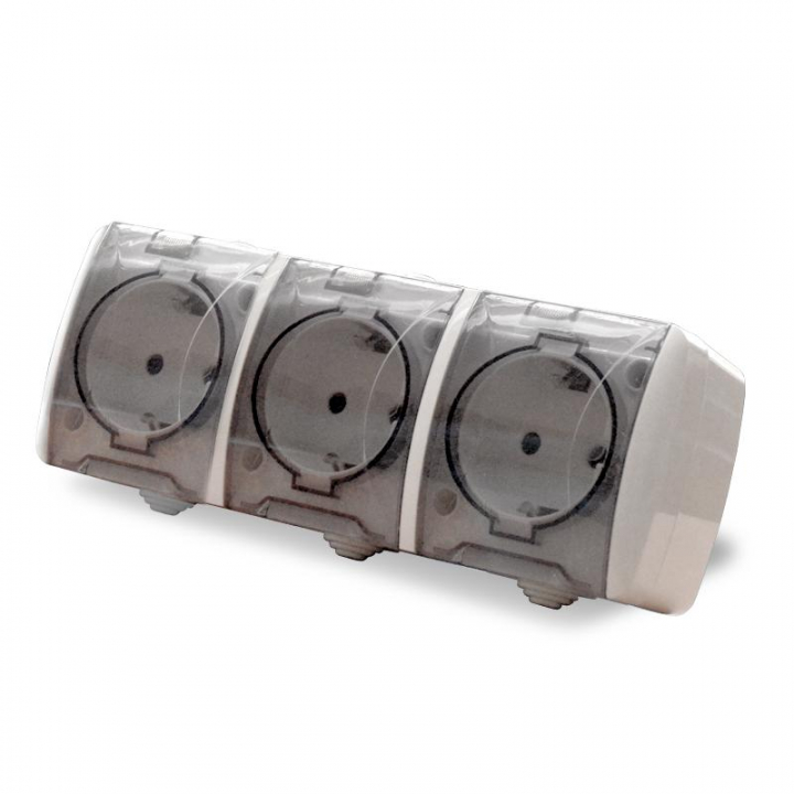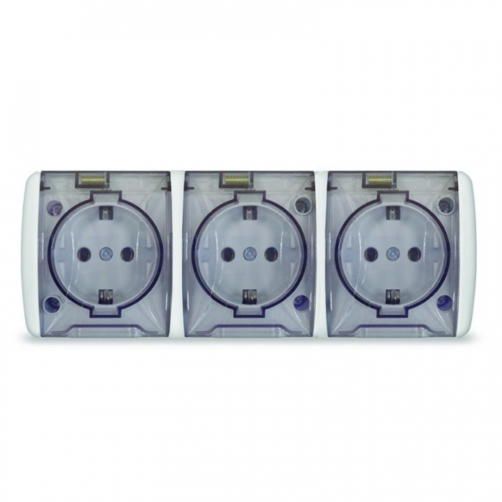 Розетка 3-м ОП Клио 16А IP54 с заземл. с прозр. крышкой бел. Universal К2235