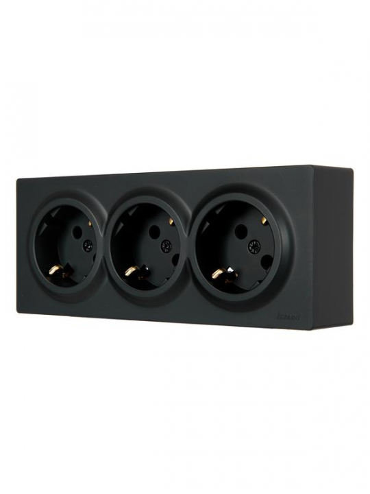 Розетка 3-м ОП LETO с заземл. закрытый корпус ПБТ черн. бархат LEZARD 752-4200-127BUP