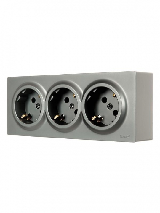 Розетка 3-м ОП LETO с заземл. закрытый корпус ПБТ платина LEZARD 752-3500-127BUP