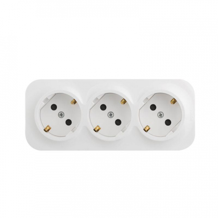 Тройная розетка с заземлением, со шторками QUTEO. Применяется в зданиях, оборудованных для повышения безопасности проводкой с заземлением (с защитным проводником). Рекомендуются к применению в помещениях в которых могут быть дети. Шторки осуществляют защитную функцию путём ограничения доступа к токоведущим контактам. Доступ открывается только при подключении вилки.