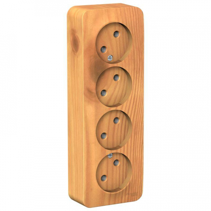 Розетка Systeme Electric (ранее Schneider Electric) BLANCA (ясень, открытой установки) четырехместная, без шторок и заземления, с изолирующей пластиной предназначена для сетей до 250В, на ток до 16А. Четырехместная розетка позволяет подключить четыре устройства в одном месте. Изделия цвета Ясень обладают уникальным рисунком, напоминающим древесный сруб. Она изготовлена из ABS-пластика, проста в установке и удобна в применении.