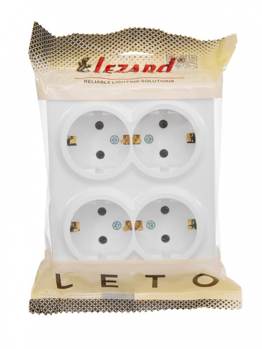 Розетка 4-м ОП LETO с заземл. закрытый корпус ПБТ бел. LEZARD 752-0200-127BDP
