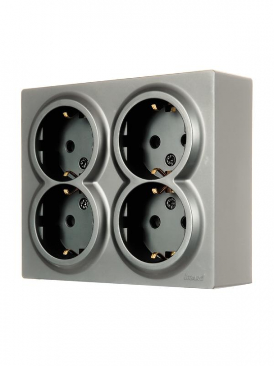 Розетка 4-м ОП LETO с заземл. закрытый корпус ПБТ платина LEZARD 752-3500-127BDP