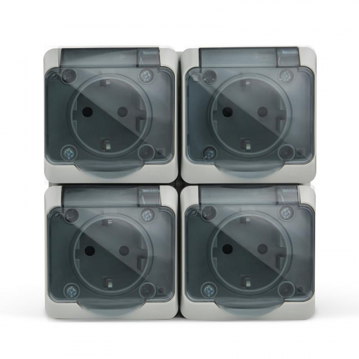 Розетка 4-м ОП Nix 16А IP54 250В с заземл. с прозр. крышкой сер. TOKOV ELECTRIC TKE-NX-R4Z-C06T-IP54