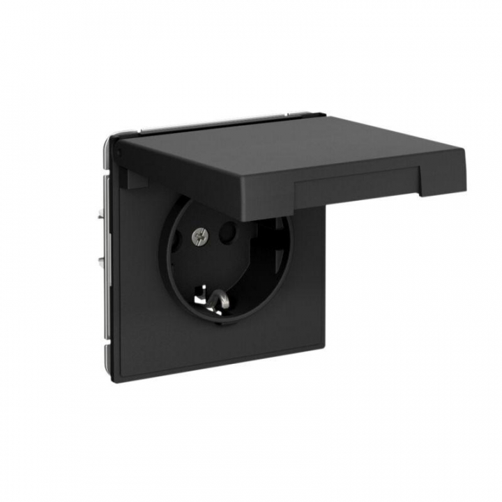 Розетка ArtGallery 16А IP20 с заземл. со шторками с крышкой быстрозажим. клем. механизм карбон SE GAL001046S