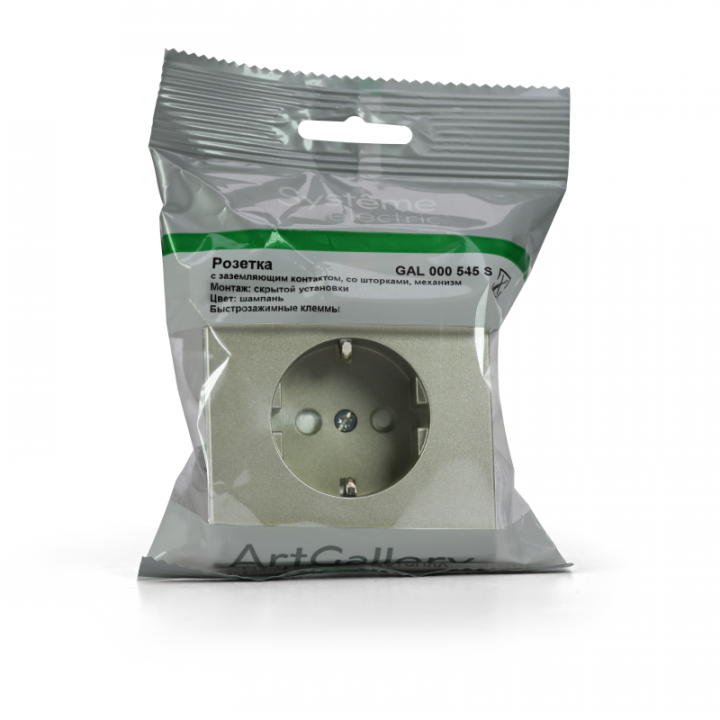 Розетка ArtGallery 16А с заземл. со шторками быстрозажим. клем. механизм шампань SE GAL000545S