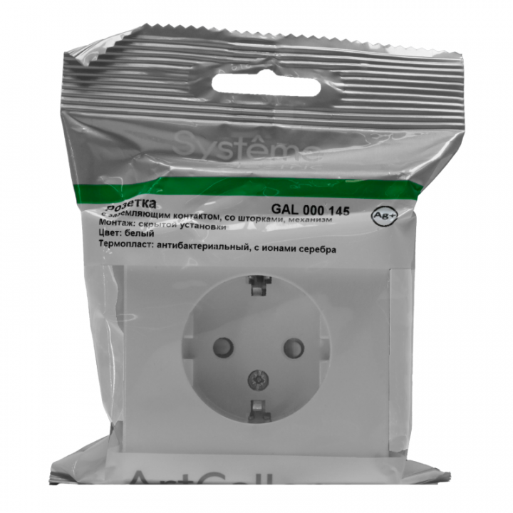 Механизм Systeme Electric серии ArtGallery в цвете белый розетки одинарной с заземлением и шторками подходит для сетей 250 В, на ток 16 А. Пластик с ионами серебра в белом цвете обеспечивает антибактериальный эффект. Заземляющий контакт обеспечивает дополнительную защиту от удара электрическим током. При наличии заземления электрический потенциал уходит в землю, защищая человека. Лицевые детали из качественного ABS-пластика, устойчивого к царапинам и УФ-излучению. Лучший промышленный дизайн (по итогам премии Минпромторг 2023).