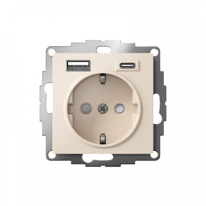 Розетка силовая Systeme Electric (ранее Schneider Electric) серии AtlasDesign 16А в цвете бежевый с заземлением и шторками с розеткой USB с двумя разъемами тип А и тип С. Розетка совмещает в себе сразу 3 функции в одном изделии. Удобное и современное решение для дома, офиса и других помещений. Лицевые детали из качественного ABS-пластика, устойчивого к царапинам и УФ-излучению. Заземляющий контакт обеспечивает дополнительную защиту от удара электрическим током. Шторки обеспечивают дополнительную безопасность в доме, где находятся дети. Одно устройство позволяет как подключить бытовые приборы, так и зарядить мобильные устройства.
