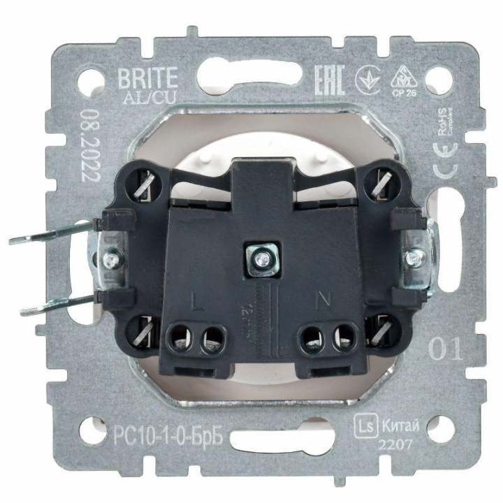 Розетка BRITE РС10-1-0-БрБ 10А без заземл. без защ. шторок механизм бел. IEK BR-R10-10-K01
