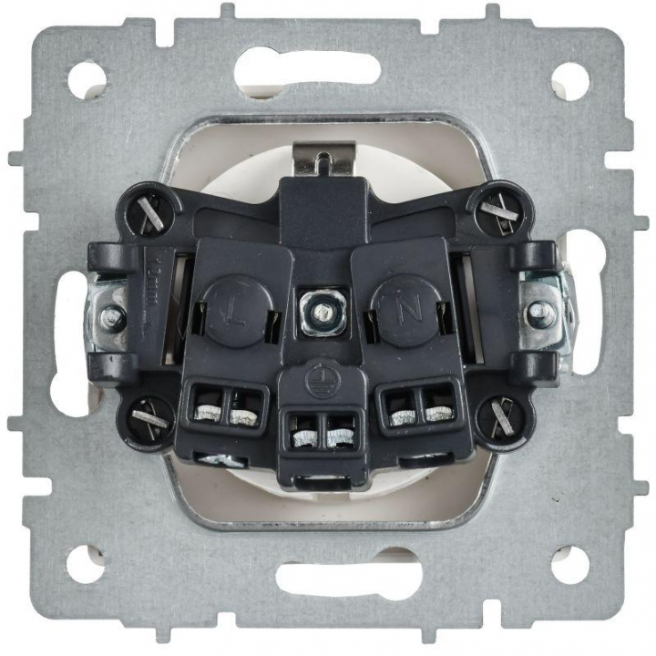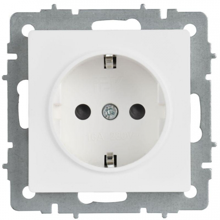 Розетка BRITE РС14-1-0-БрАБ 16А с заземл. защ. шторки механизм арктич. бел. IEK BR-R14-16-K91