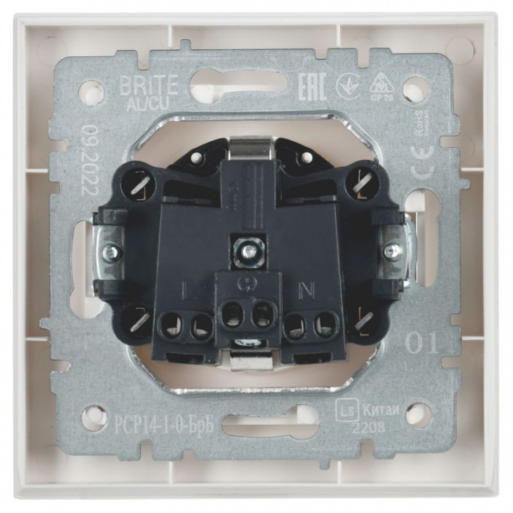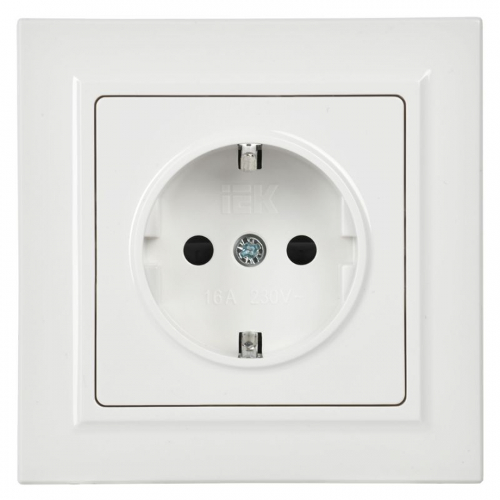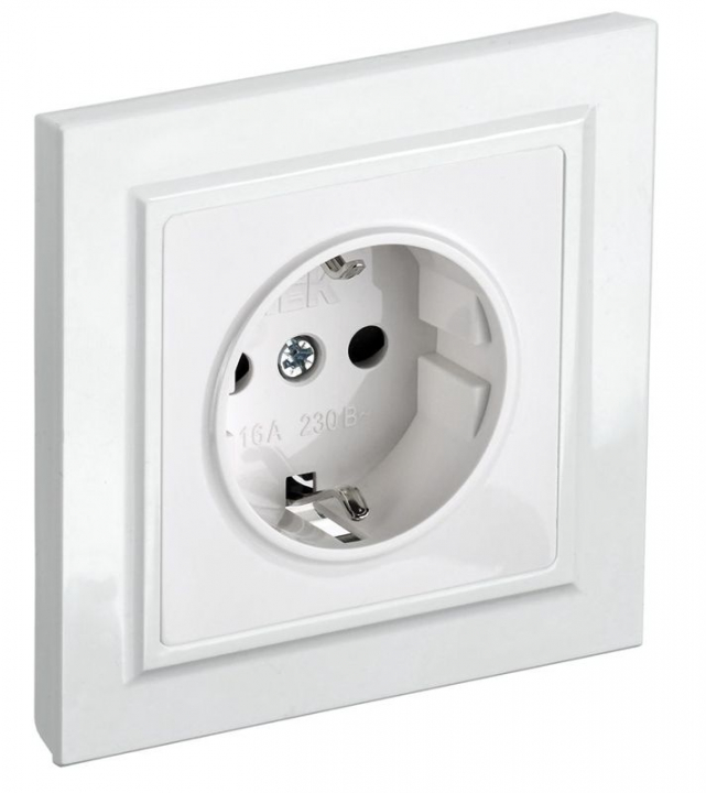 Розетка BRITE РСР14-1-0-БрБ 16А в сборе с заземл. защ. шторки бел. IEK BR-R14-16-K01-F