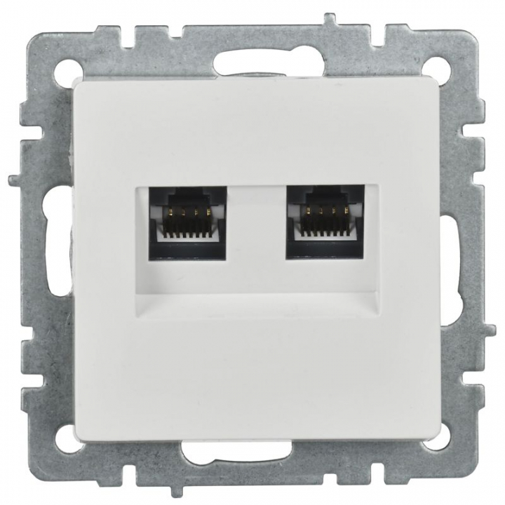 Розетка двойная СП RJ11+RJ45 кат.5E BRITE РК/Т12-БрБ механизм бел. IEK BR-KT20-O-1-K01