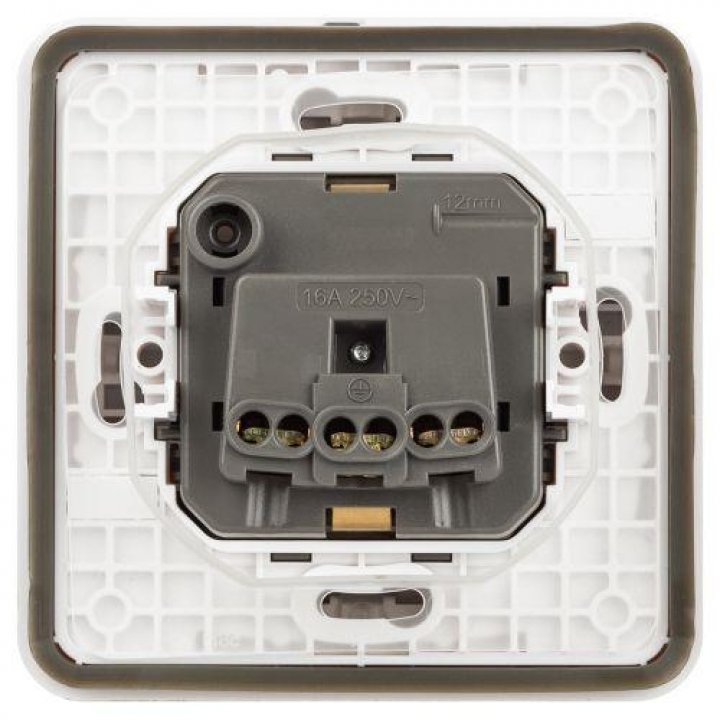 Розетка встраиваемая со шторками крышкой серии Эра Эксперт накладная IP55 цвет белый 11-2521-01 скрытой установки. Номинальные характеристики 16А 250В. Выполнена из качественного поликарбоната, оснащён уникальными винтовыми клеммами ЭКСПЕРТ для максимально качественного зажима кабеля в механизме.