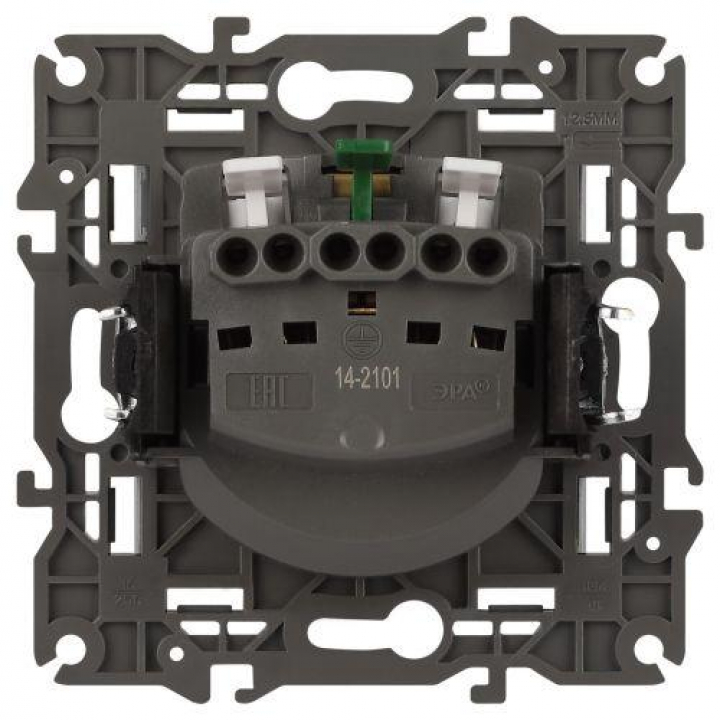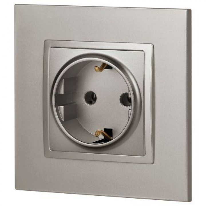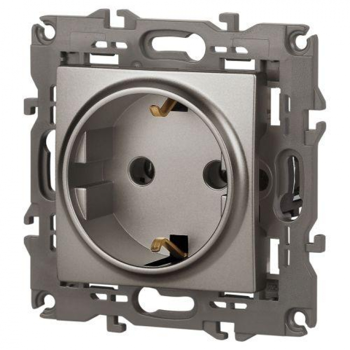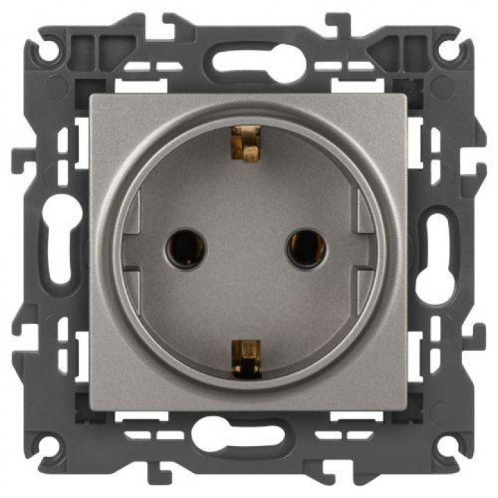 Розетка с заземлением серии Эра Elegance цвет титан 14-2101-16. Характеристики 16А 250В. Оснащена автоматическими клеммами для надёжной фиксации жил кабеля в механизме. Рамки приобретаются отдельно.
