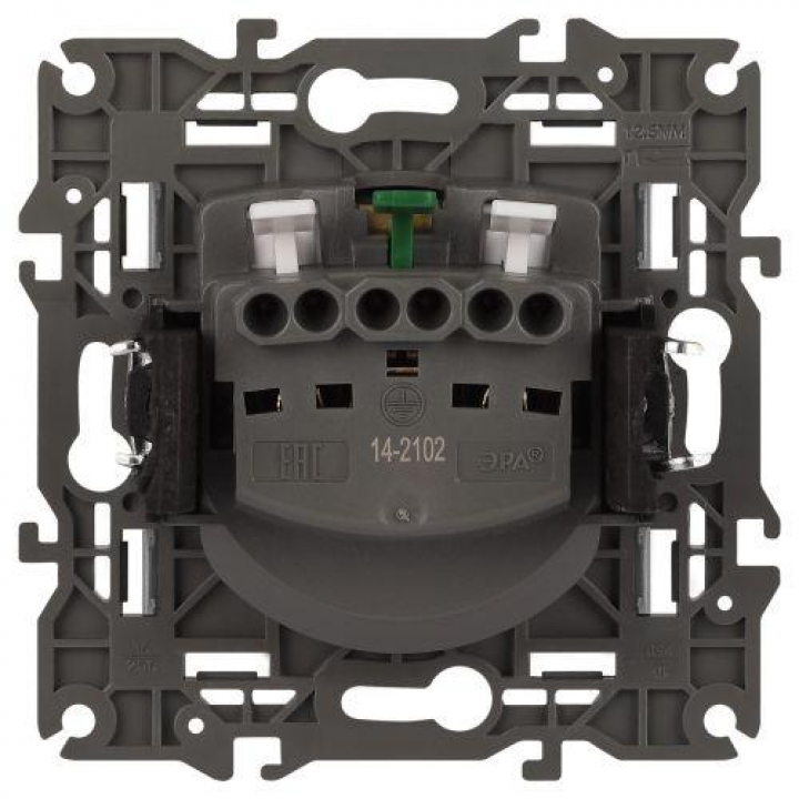 Розетка с заземлением и шторками серии Эра Elegance цвет титан 14-2102-16. Характеристики 16А 250В. Оснащена автоматическими клеммами для надёжной фиксации жил кабеля в механизме. Рамки приобретаются отдельно.
