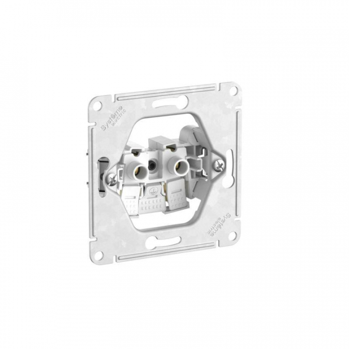 Механизм с быстрозажимными клеммами Systeme Electric (ранее Schneider Electric) серии Glossa (цвет белый) розетки без заземления подходит для сетей 250 В, на ток 16 А. С помощью новых быстрозажимных клемм монтаж розеток и выключателей стал намного быстрее. Теперь подключение не требует использования отвертки. Выполнен из материала PС+ASA, стойкого к УФ-излучению и появлению царапин.