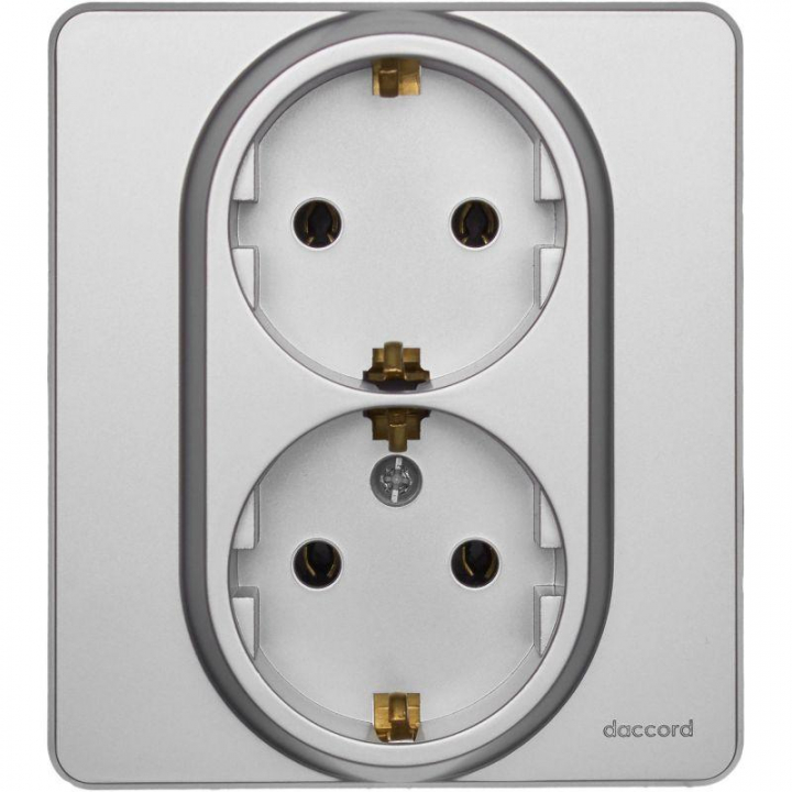 Розетка двойная с заземлением для скрытого монтажа Inspiria, цвет "Алюминий", максимальный ток 16А, напряжение ~250В, максимальная мощность 3680Вт, винтовые зажимы. Применяется для присоединения однофазных электрических потребителей к сети переменного тока в зданиях с проводкой с заземлением (с защитным проводником). Позволяет компактно разместить две розетки в одном установочном месте.