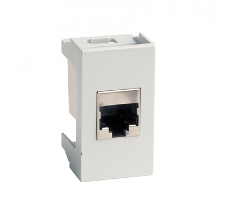 Компьютерная розетка RJ-45 Cat 5e, экранированная. Назначение: подсоединение кабеля к компьютеру, принтеру и прочей оргтехнике. Характеристики: 8Р8С; комплектуются одномодульным гнездом; для заделки контактов в розетки использовать инструмент типа 110. Тип гнезда: Keystone. Производитель гнезда: Hyperline. Установочный размер: 45х25. Кол-во модулей: 1. Цвет: белый