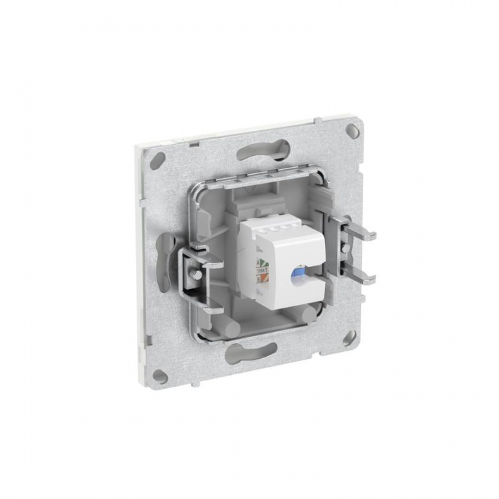 Компьютерная розетка RJ-45 одинарная, кат. 5e, применяется для подключения компьютерной техники и соединения с патч-панелью. Компьютерная розетка предназначена для скрытого монтажа в стену, поставляется в комплекте с суппортом. Позволяет организовать сеть с частотой 125 МГц и скоростью до 1000 Мбит/с. Материал: металл, поликарбонат. Пластиковые элементы имеют цвет "Белая магнолия". Для декоративного оформления электроустановочных изделий используются рамки серии "KANT".