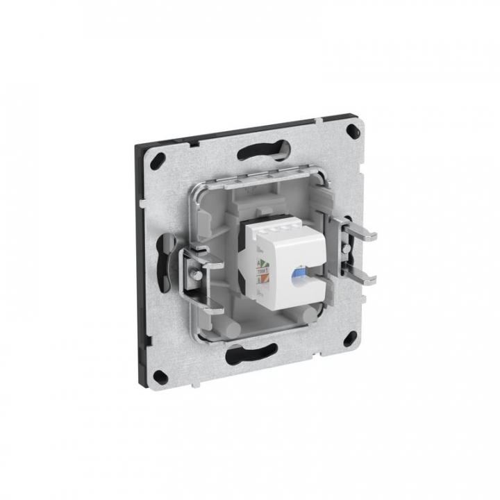 Компьютерная розетка RJ-45 одинарная, кат. 5e, применяется для подключения компьютерной техники и соединения с патч-панелью. Компьютерная розетка предназначена для скрытого монтажа в стену, поставляется в комплекте с суппортом. Позволяет организовать сеть с частотой 125 МГц и скоростью до 1000 Мбит/с. Материал: металл, поликарбонат. Пластиковые элементы устройства имеют цвет "Черный уголь". Для декоративного оформления электроустановочных изделий используются рамки серии "KANT".