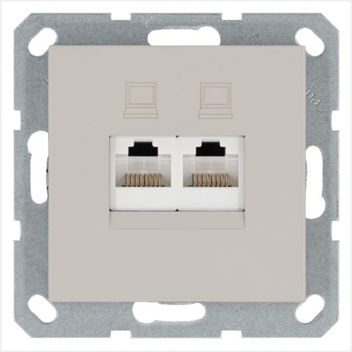 Розетка компьютерная 2-м RJ45 IP20 кат. 5E механизм тауп Jasmart G6106T