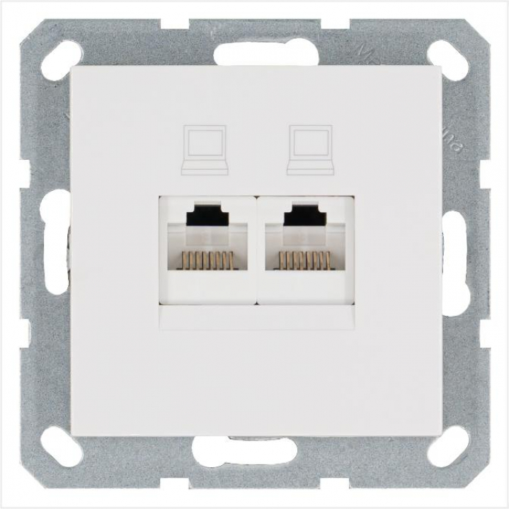 Розетка компьютерная 2-м RJ45 IP20 кат. 5E механизм бел. глянцевый Jasmart G6106W