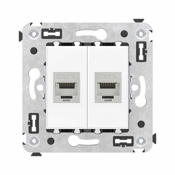 Компьютерная розетка двойная экранированная используется для подключения компьютерной техники и соединения с патч-панелью, предназначена для скрытого монтажа в стену, поставляется в комплекте с суппортом. Розетка RJ-45 категории 6 может использоваться для организации сетей с частотой до 250 МГц и передавать данные на большие расстояния. Материал розетки – металл, термопласт. Пластиковые детали изделия выполнены в цвете "Белое облако" – самом универсальном оттенке из цветовой гаммы ЭУИ "Avanti".