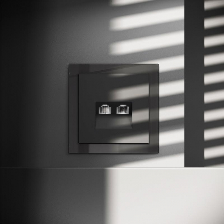 Розетка компьютерная 2-м СП S70 RJ45 + RJ45 кат.6 механизм черн. матов. Voltum VLS060208