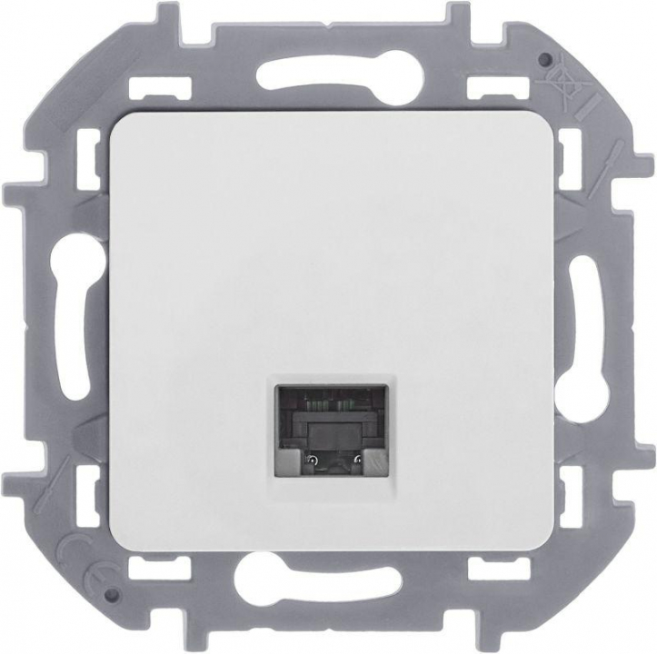Розетка компьютерная для скрытого монтажа Inspiria, 1 разъем RJ45 категория 5е UTP, цвет "Белый". Предназначена для быстрого подключения персональных компьютеров, принтеров, роутеров и другого оборудования к информационным сетям категории 5е со скоростью передачи данных до 1000 Мбит/с. Возможно прямое подключение 1 устройства.
