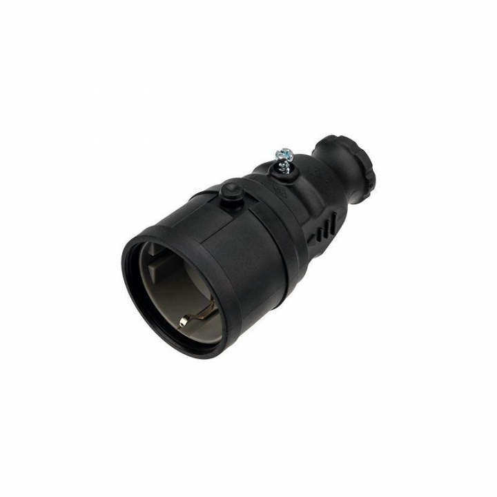 Электрическая влагозащищенная переносная розетка предназначена для подключения бытовых и профессиональных приборов к электросети. Разработана для использования в сложных эксплуатационных условиях с высокой влажностью. Широко применяется в быту, на производстве и в строительстве. Розетка имеет степень защиты IP20 – без включенной вилки и не защищена от капель и брызг воды. Совместно с включенной влагозащищенной вилкой розетка имеет степень защиты IP44, что позволяет использовать розетку для организации электропитания под открытым небом, а в дождь – под навесом. Не допускается погружение в воду. Розетка оснащена защитной крышкой. Для обеспечения безопасности детали, соприкасающиеся с токоведущими частями выполнены из огнеупорного материала, устойчивого к температуре до +850 ?С. Ударопрочный разборный корпус выполнен из каучука: устойчив к ударам, вибрациям и другим механическим воздействиям. Заземление: есть. Сечение проводников: 0,75-2,5 мм2. Контактная группа: MS-58 (латунь). Тип полюсов: 2Р+РЕ.