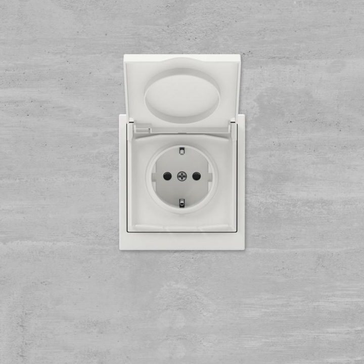 Розетка 2P+E (однофазная розетка с заземлением) с защитными шторками и крышкой применяется для подключения бытовых электроприборов во влажных помещениях. Предназначена для скрытого монтажа в стену. Характеристики устройства: номинальное напряжение 250 В, номинальный ток 16 А, степень защиты IP44. Материал: металл, поликарбонат. Пластиковые элементы устройства имеют цвет "Белый песок". Для декоративного оформления электроустановочных изделий используются рамки серии "KANT".