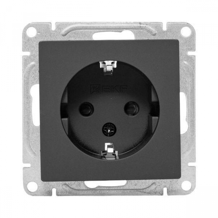 Розетка СП Эпика 16А с заземл. защ. шторки механизм черн. EKF UP1-SOB-111