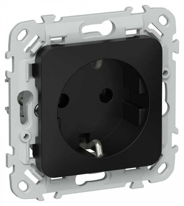 Розетка СП FLITE РС11-0-ФлЧ 16А с заземл. без защ. шторок механизм черн. IEK FI-R11-16-K02