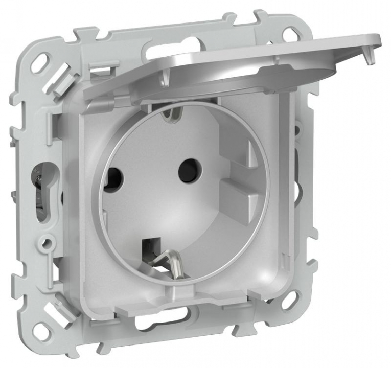 Розетка СП FLITE РСшкр11-1-44-ФлА 16А IP44 с заземл. с защ. шторками и крышкой безвинтовое крепление механизм алюм. IEK FI-R16-16-1-44-K47