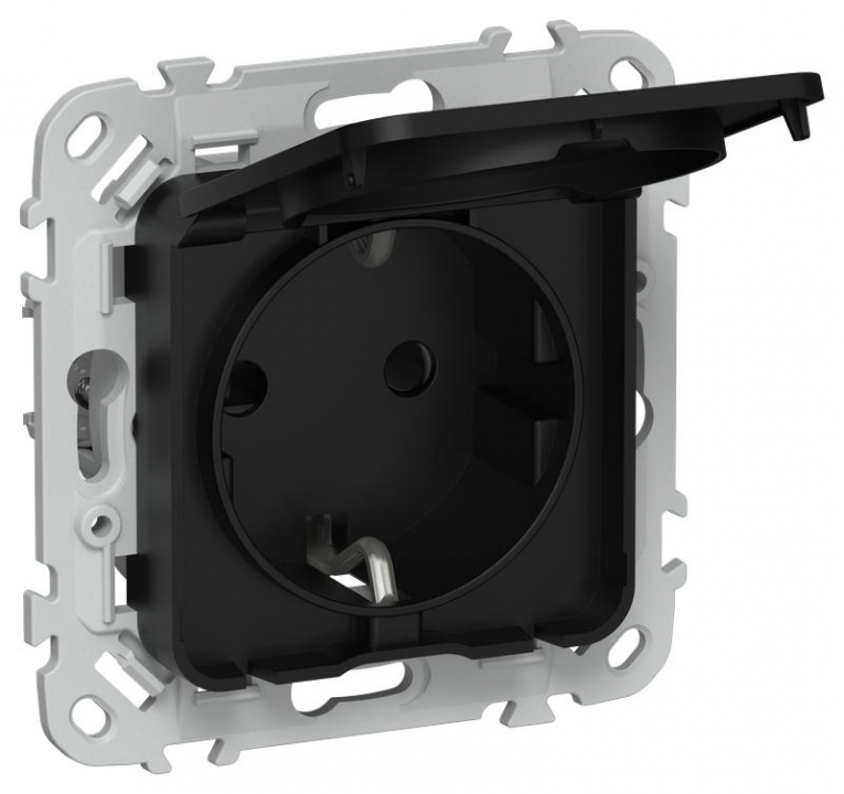 Розетка СП FLITE РСшкр11-1-44-ФлЧ 16А IP44 с заземл. с защ. шторками и крышкой безвинтовое крепление механизм черн. IEK FI-R16-16-1-44-K02