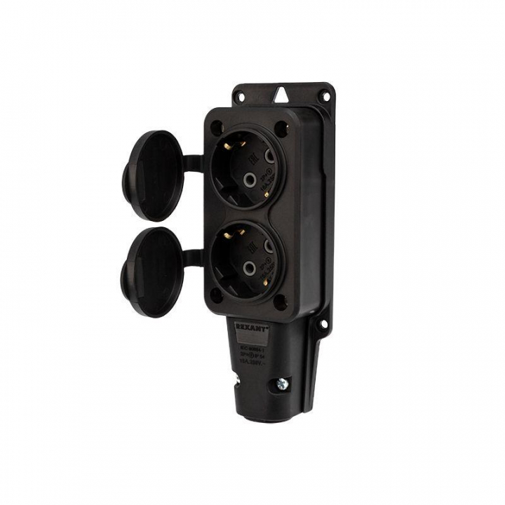 Розетка штепсельная двухместная влагозащ. с/з 16А IP54 каучук Rexant 111-112