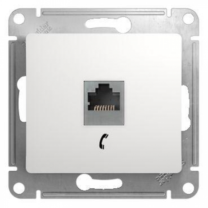 Механизм Systeme Electric (ранее Schneider Electric) серии Glossa (цвет белый) розетки телефонной с разъёмом RJ11 предназначен для удобного и быстрого подключения вашего телефона, модема или факса к телефонной сети. Выполнен из материала PС+ASA, стойкого к УФ-излучению и появлению царапин.