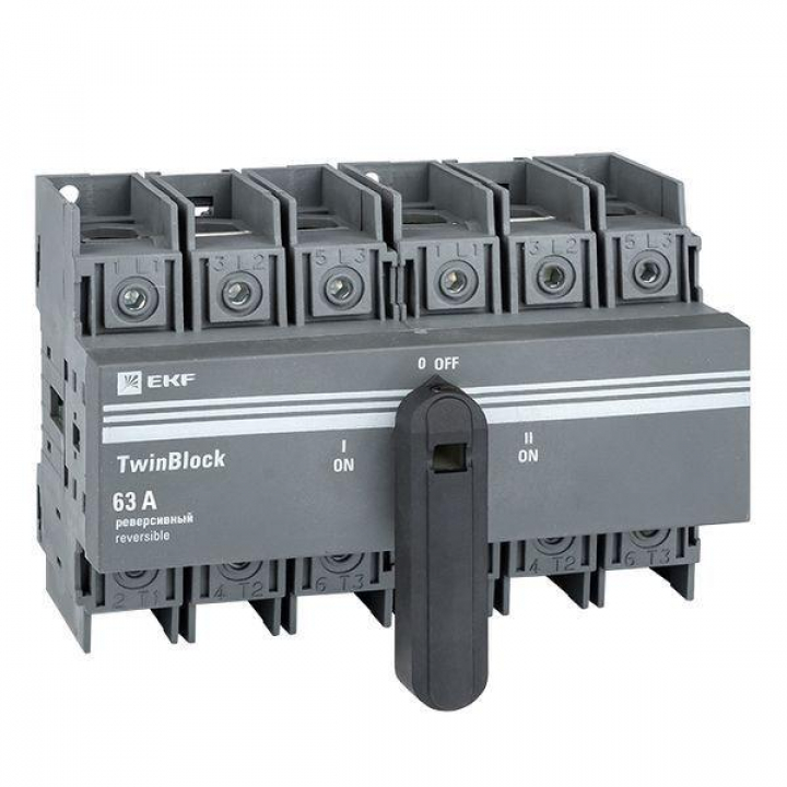 Рубильник 3п 63А реверсивный с рукояткой для прямой установки TwinBlock EKF tb-s-63-3p-rev