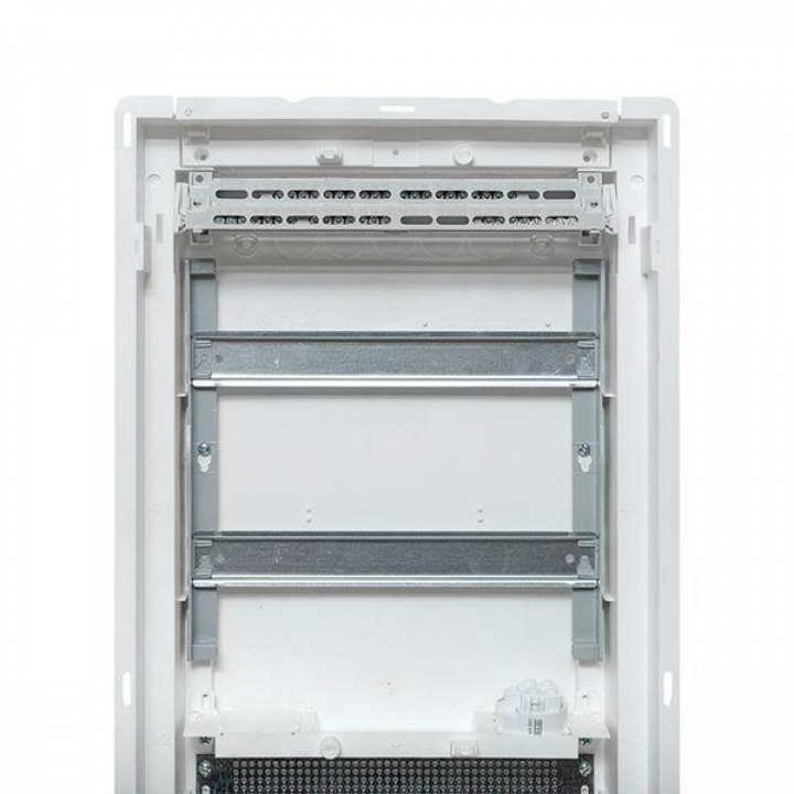 Корпуса пластиковые серии «Nova» предназначены для сборки силовых, слаботочных и комбинированных щитов. На DIN-рейки устанавливается модульное оборудование. На монтажные платы – антенные разветвители, Wi-Fi роутеры, патч-панели и иное слаботочное оборудование. Щиты устанавливаются как в бетонные и кирпичные стены, так и в гипсокартон, монтажные комплекты для установки в гипсокартон входят в комплектацию оснований щитов либо в комплектацию щитов в сборе. Двери щитов можно выбрать их разных материалов – пластик, металл или металл с перфорацией. Также доступны дополнительные аксессуары, необходимые для установки мультимедийного оборудования и существенно упрощающих монтаж щитов. Есть возможность приобрести как отдельно основание щита и дверь, так и основание с дверью в комплекте в одной коробке. Основные преимущества: съемные шасси с din-рейками, съемные кабельные фланцы, гребенка для фиксации входящих проводников, регулировка дверей по глубине, современный минималистичный дизайн